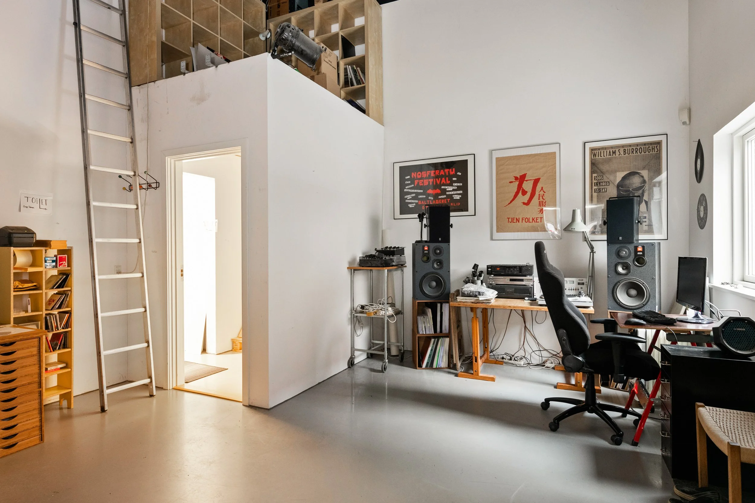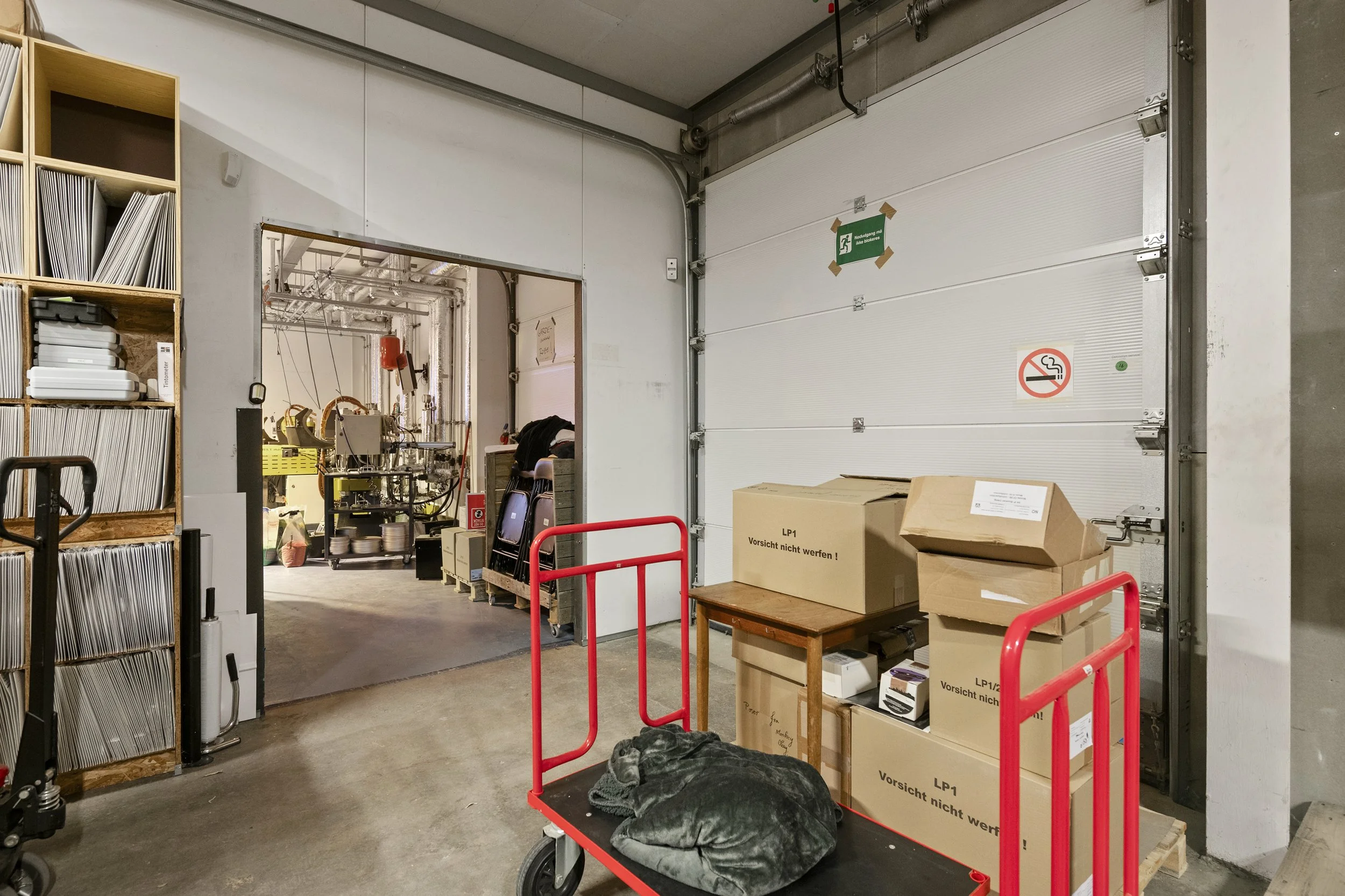 Kombineret kontor-, lager- og produktionslejemål med to porte i gadeniveau. Lejemålet er i dag opdelt i separate sektioner med henholdsvis kontor, lager og produktion. Lagerdelen er isoleret og har port i gadeniveau. Produktionsdelen er indrettet med stort vinduesparti, egen port, tekøkken samt badeværelse. Kontordelen er opdelt i ét storrum og to mindre lokaler.
